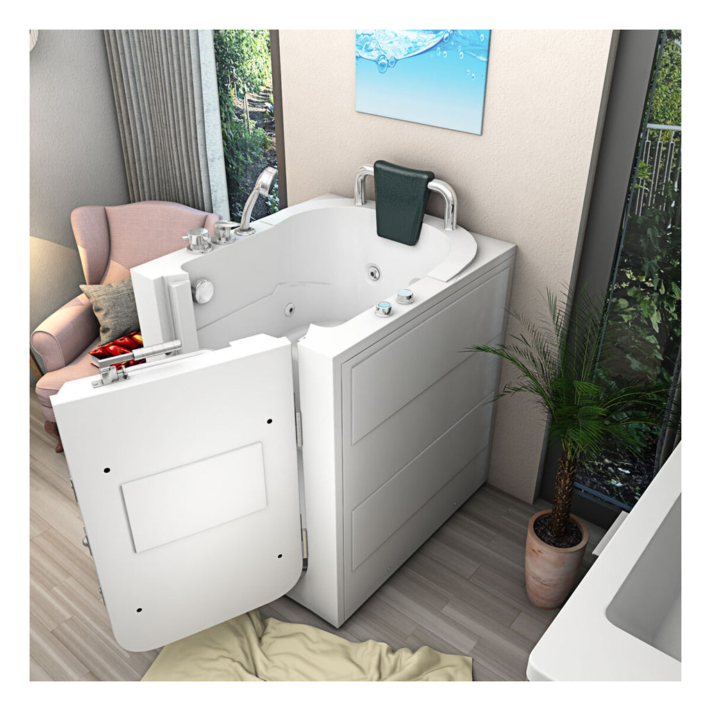 Die breite Türöffnung sowie der geräumige Einstiegsbereich, der integrierten Haltegriff und das anatomische Design des Wannenkörpers gewähren einen sicheren Halt und bieten Personen eine angenehme Bewegungsfreiheit.