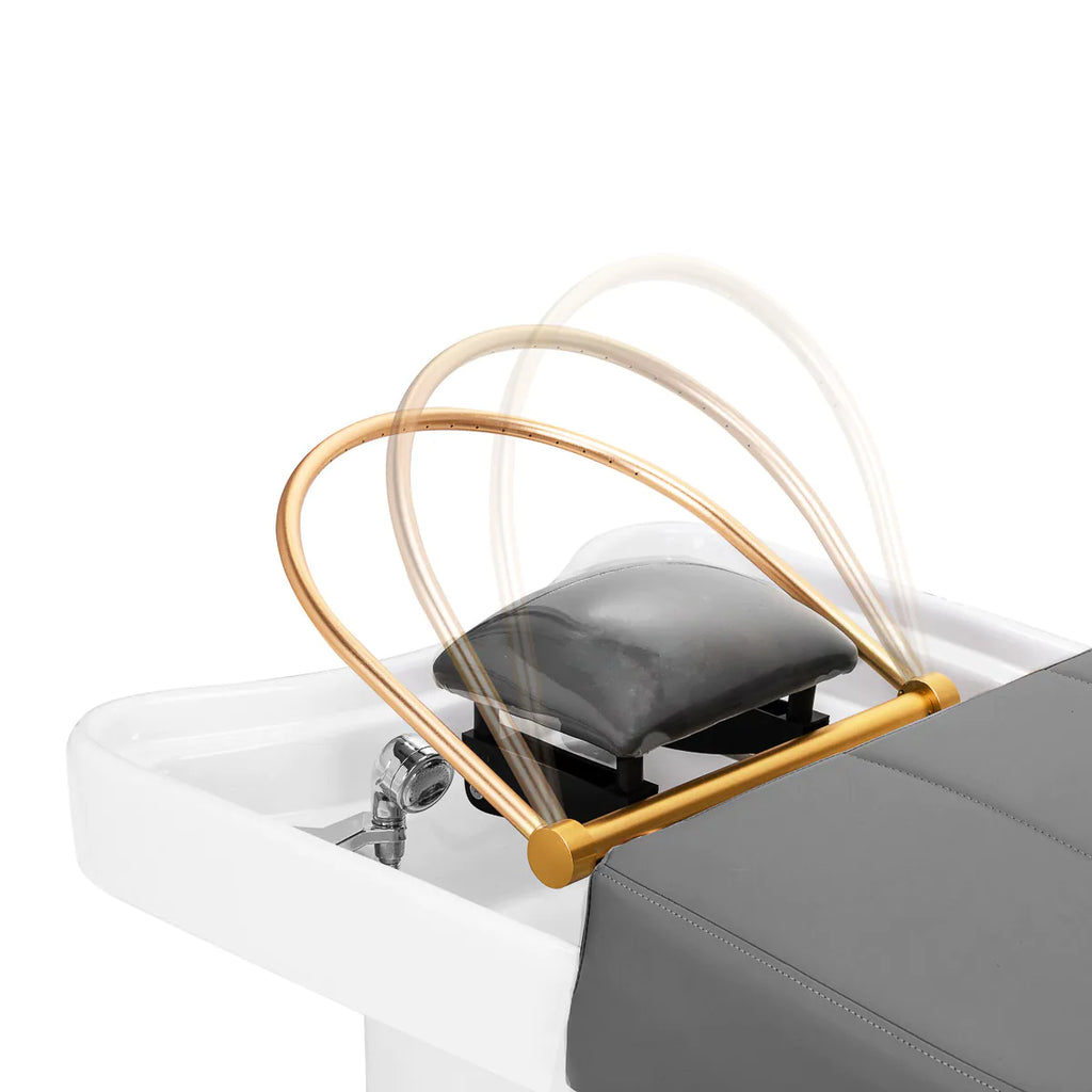 Der goldene Bogen mit einstellbarem Neigungswinkel, der für Waterfall Head SPA entwickelt wurde, ist eine innovative Lösung,die eine umfassende Kopfhautpflege ermöglicht. Die Wasserstrahlen wirken wie eine natürliche Massage, verbessern die Durchblutung, reduzieren Verspannungen und Stress. Der präzise gesteuerte Wasserflussfördert die Haarregenerationund versorgt die Haut intensiv mit Feuchtigkeit. Der winkelverstellbare Wasserfall sorgt für eine gründliche Reinigung der Kopfhaut und Entspannung undlindert Beschwerdenwie Kopfschmerzen oder steifen Nacken. Dankdes intelligenten geschlossenen Kreislaufsystemsentnimmt der Lichtbogen Wasser aus der Schüssel und verwendet es wieder, wodurch eine ununterbrochene Wassermassage gewährleistet wird. Es ist eine Kombination aus Technologie und Entspannung,diedie Gesundheit und das Wohlbefinden der Haare unterstützt.