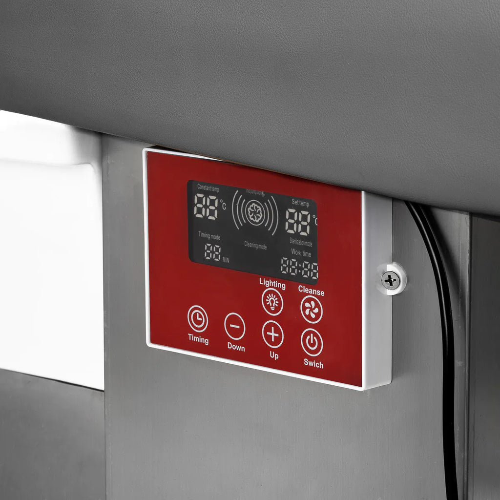 Das intuitive Touchpanelbietet die volle Kontrolle über die Funktionen der Waschanlage. Es ermöglicht Ihnen, die Betriebszeit und die Temperatur des Wassers einzustellen sowie deren aktuelle Werte zu überwachen. Dank deseingebauten Displayskönnen Sie jederzeit sehen, wie lange das Gerät schon läuft. Das Panel ermöglicht es Ihnen auch,die Hintergrundbeleuchtung der Schüssel einzuschaltenund so eine Atmosphäre der Entspannung und des Luxus zu schaffen. Darüber hinaus istdas Dampftherapiegerät mit einer Fernbedienungfür eine komfortable Fernbedienung ausgestattet.