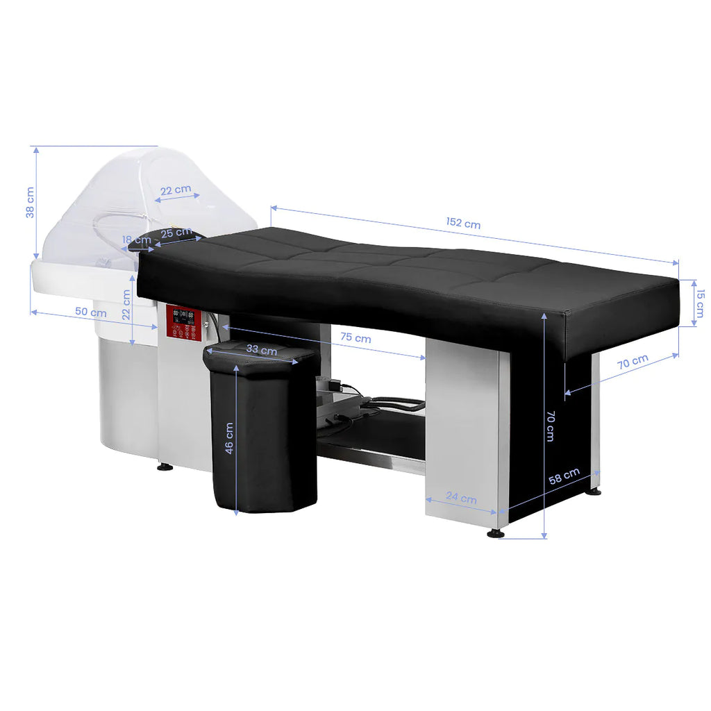 Die eleganteLiege Gabbiano Head Spa 017 mit integrierter Waschanlageist eine innovative SPA-Liege, geschaffenfür professionelle Pflege- und Entspannungsbehandlungen. Es ist ideal für die Behandlungen desluxuriösen Japanese Head SPA, das eine breite Palette von Therapien für Kopfhaut und Haar anbietet. Es ermöglicht Ihnen, Hydrotherapie, Wasserstrahlmassage, Aromatherapie und Lichttherapietechniken zu kombinieren undso ein ganzheitliches Pflegeerlebniszu bieten. Fortschrittliche Technologien und ergonomisches Design bieten nicht nurunvergleichlichen Komfortfür die Kunden, sondernerleichtern auch die Arbeit von Schönheits- und Wellnessprofis. Gabbiano Head Spa 017 ist eineeinzigartige Kombination aus Tradition und Moderne, die für tiefe Entspannung, Pflege und Hydratation von Kopfhaut und Haaren sorgt. Darüber hinaus kann eszur Massage des Körpers verwendet werdenund bietet umfassende therapeutische und entspannende Möglichkeiten.
