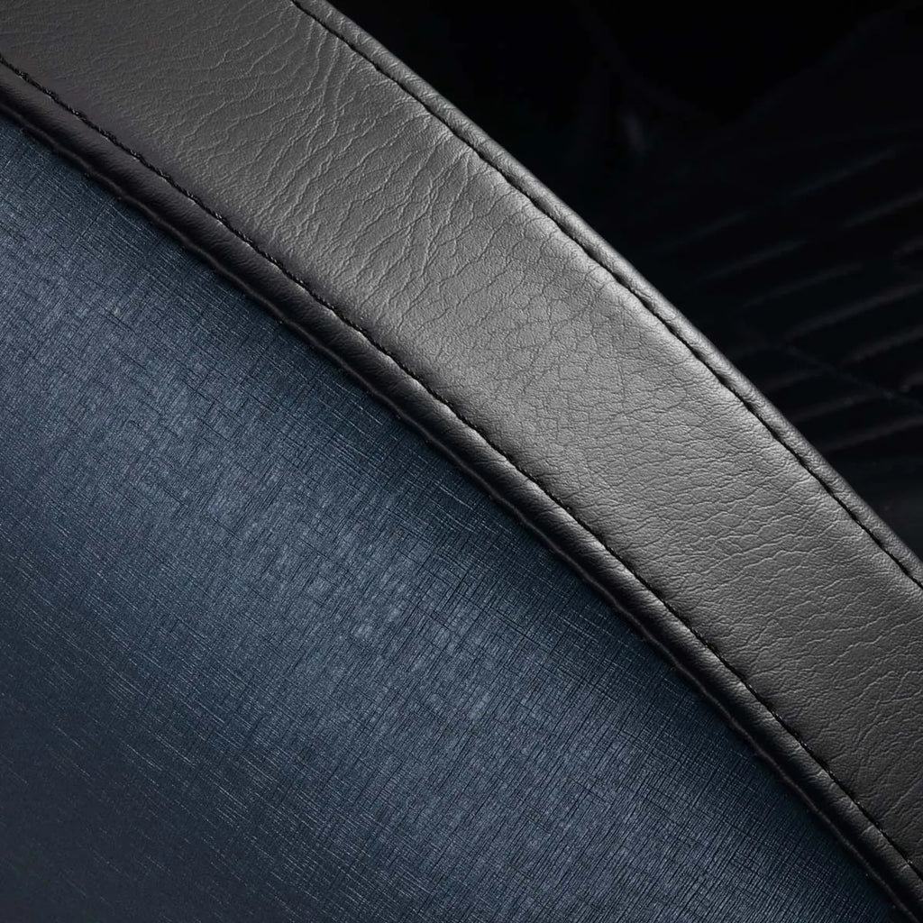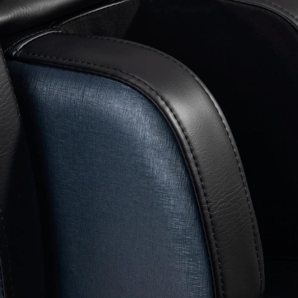 Der bequeme Sessel ist miteinem angenehm anzufassenden Lederimitatin Schwarztönen bezogen. Die Verwendung eines solchen Materials macht essehr feuchtigkeitsbeständig und leicht zu reinigen. Die Kombination strukturierter Materialien in Beige- und Blautönen an den äußeren Teilen des Stuhls verleiht dem Produktein außergewöhnlich originelles und gleichzeitig elegantes Aussehen. Sorgfältig verarbeitete Säume verleihen ihm einen stilvollen Look, und die solide Konstruktion garantiert eine lange Nutzung. Ein kompaktes Modellmit ästhetischem Finish und klassischen Farbenpasst perfekt in jedes Interieur. Der Massagesessel Sakura Classic 305 isteine großartige Möglichkeit, sich jederzeit zu entspannen, besonders nach einem anstrengenden Tag oder einem harten Training.