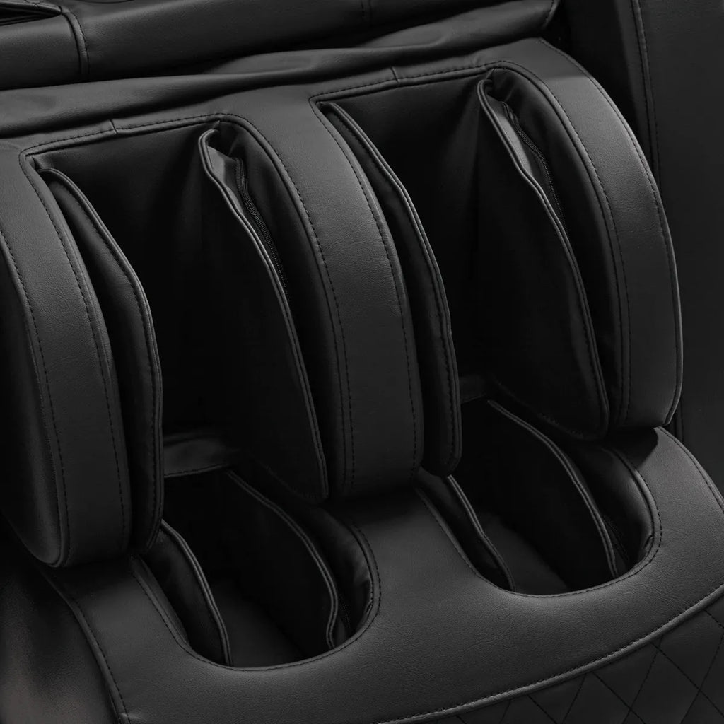 Der Massagemechanismus massiert die Muskeln gründlich und angenehm auf verschiedene Weise.Sechs Massageköpfesorgen für eine effektive Rückenmassage, die die Arbeit menschlicher Hände nachahmt. Ihre Bewegungen führeneine Klopf-, Knet- und Kompressionsmassagedurch, wodurch sie die Gesamteffizienz des Körpers verbessern und Schmerzen beseitigen. Nach jeder Massage auf dem Stuhl ist eindeutlicher Abbau von Muskelverspannungenspürbar und der Körper wird angenehm entspannt und stimuliert.Das eingebaute Rollfußmassagegerätverwendet Akupressurmethodenund entspannt effektiv die Muskeln, reduziert Müdigkeit und wirkt sich positiv auf das allgemeine Wohlbefinden aus.