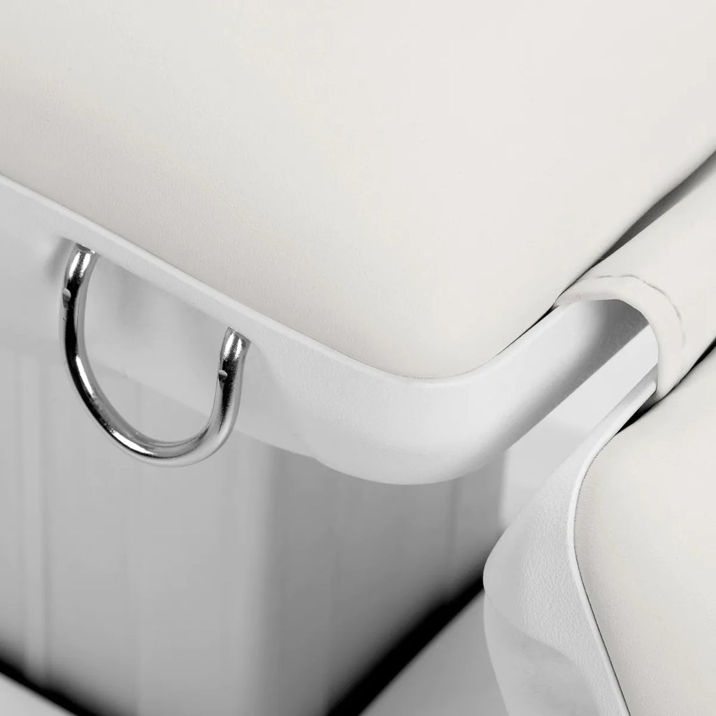 Ein stabiles, solides Untergestell garantiert nicht nur die Langlebigkeit des Stuhls, sondern auchSicherheit und Komfortim Arbeitsalltag. Das Modell ist mit Schaumstoff gefüllt und mit Kunstleder in einem eleganten Weißton bezogen – dieses Material fühlt sich angenehm an, istfeuchtigkeitsbeständig und leicht zu reinigen. Die stromlinienförmige Form und das minimalistische Finish verleihen dem Ganzeneinen modernen, ästhetischen Look, der perfekt zum Dekor sowohl klassischer als auch moderner Innenräume passt.