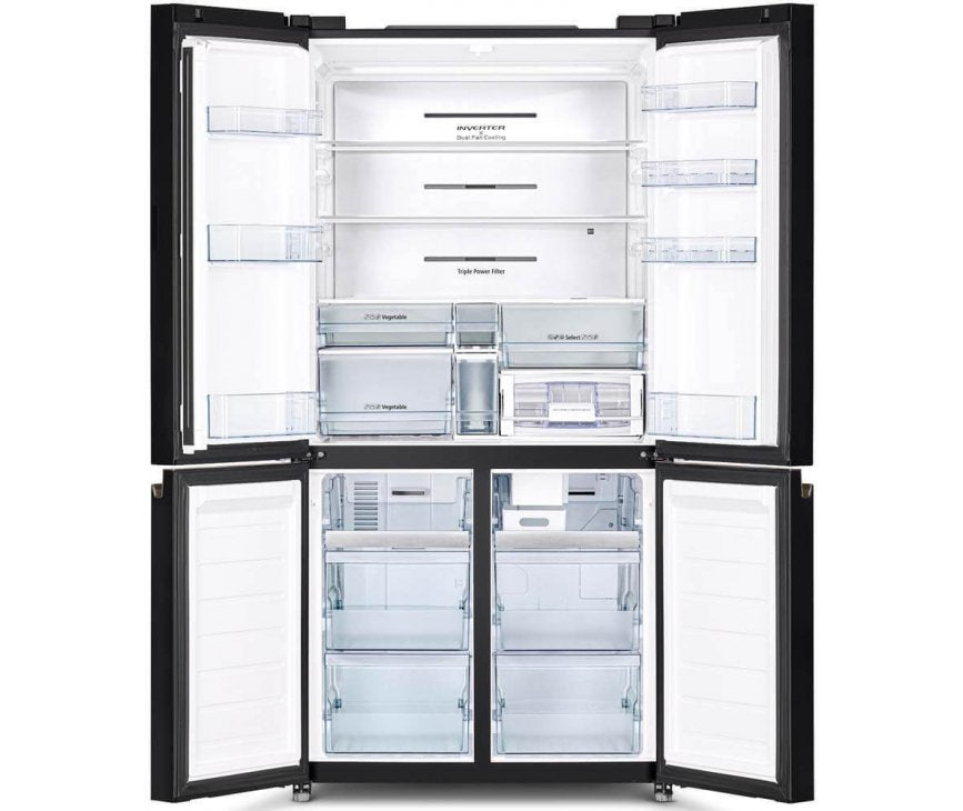 Viertüriger Tiefkühlschrank aus schwarzem GlasDer R-WB640VRU0 ist ausgestattet mit einer Vakuumschublade, wählbarer Zone, verstellbarer Schublade, Gemüsezone, No-Frost-Technologie, Schnellkühlung, automatischer Eismaschine, LED-Beleuchtung, Touchscreen-Steuerung und vielem mehr. Dank fortschrittlicher umweltbewusster Technik und hochwertiger Materialien können Sie mit Hitachi-Kühlschränken jeden Tag den Geschmack von Frische Genießen.
