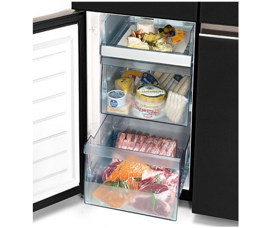 Das Kühlfach der Hitachi French Door Kühlschrank R-WB640VRU0-GBK ist flexibel einteilbar (einstellbar), hat 3 Schubladen inklusive und weitere praktische Ablagemöglichkeiten.