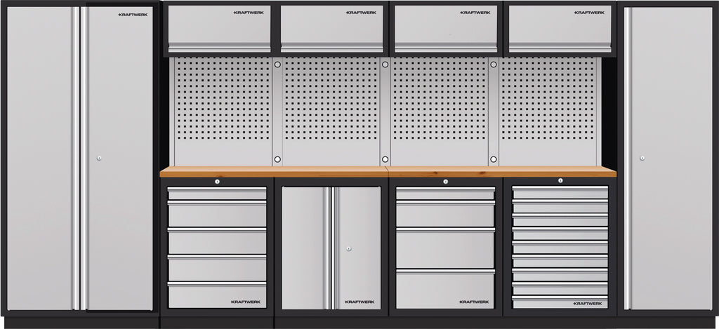 With the KRAFTWERK MOBILIO 6-piece combination unit, you're not just getting storage space, but a well-designed system for your workshop. Whether you're a professional tradesperson or a passionate hobbyist, this workbench keeps everything within easy reach and organized. The combination of cabinets, drawers, and pegboards can be customized to your individual needs. A true space-saving marvel that makes your work easier and brings order to your tools.