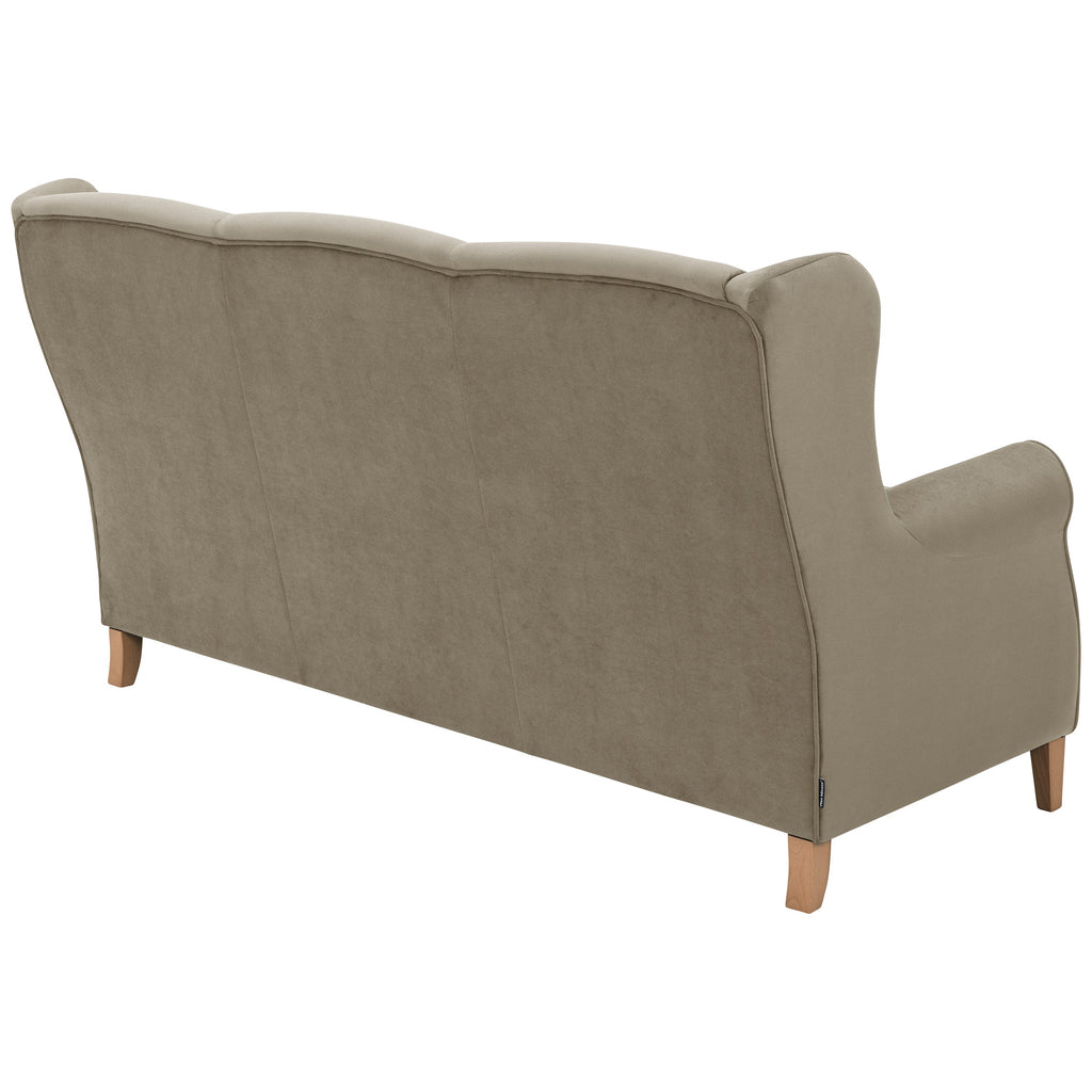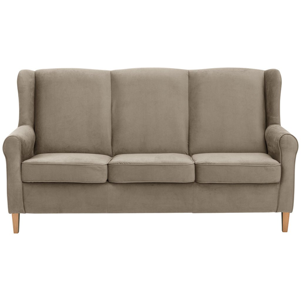 A cozy 3-seater sofa in a classic wingback style, also available as a 2-seater. The nostalgic design is emphasized by the elegantly curved armrests, which feature elaborate piping. Loose seat cushions with foam-covered single spring cores ensure exceptional seating comfort and are secured with Velcro to prevent slipping. The timeless retro design makes this sofa a true furniture classic. The soft fabric cover made of cozy micro-velour is perfect for combining with other styles and is available in various colors.