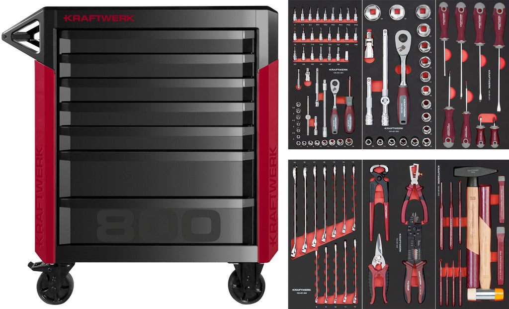 PRO LINE workshop trolley PT800, 7 drawers, 103-piece set.