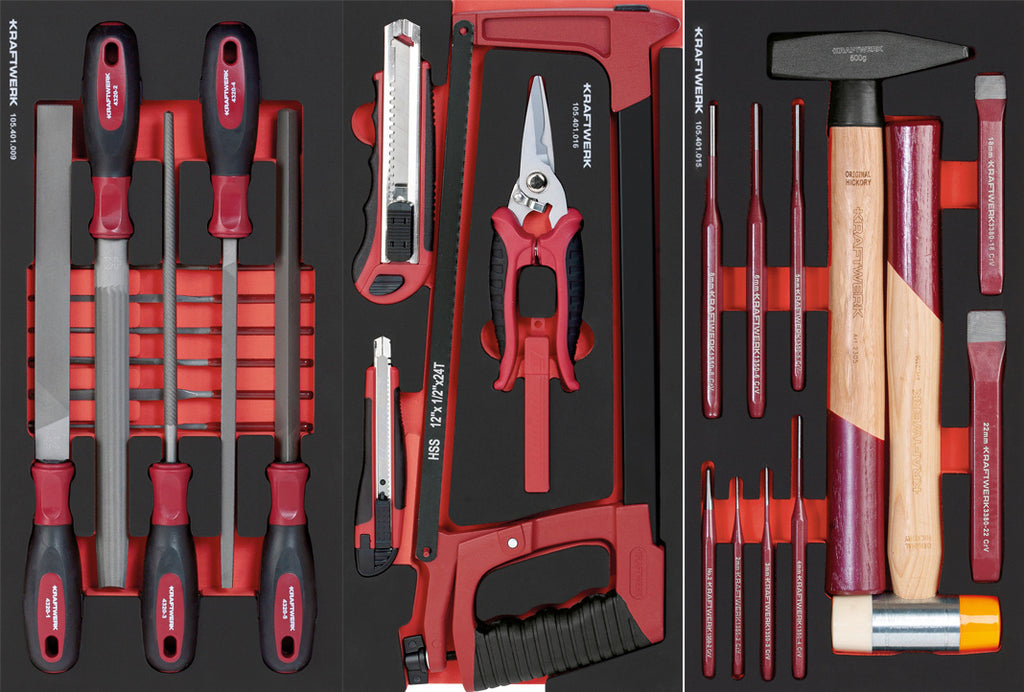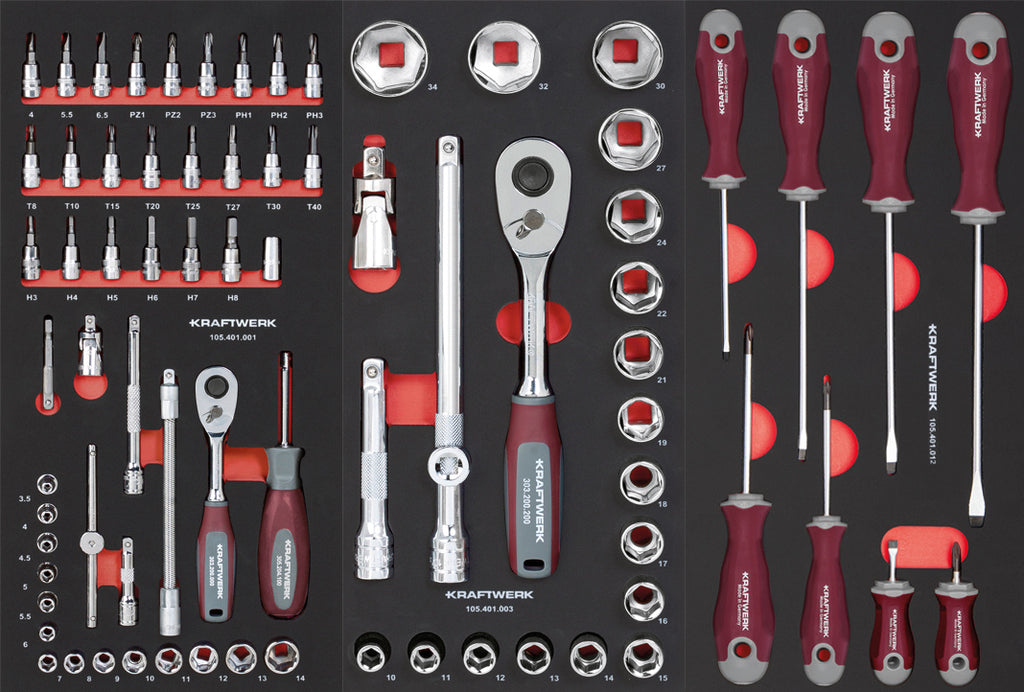 143 high-quality tools in 9 specially high-density soft foam inserts (EVA) 20x40 cm