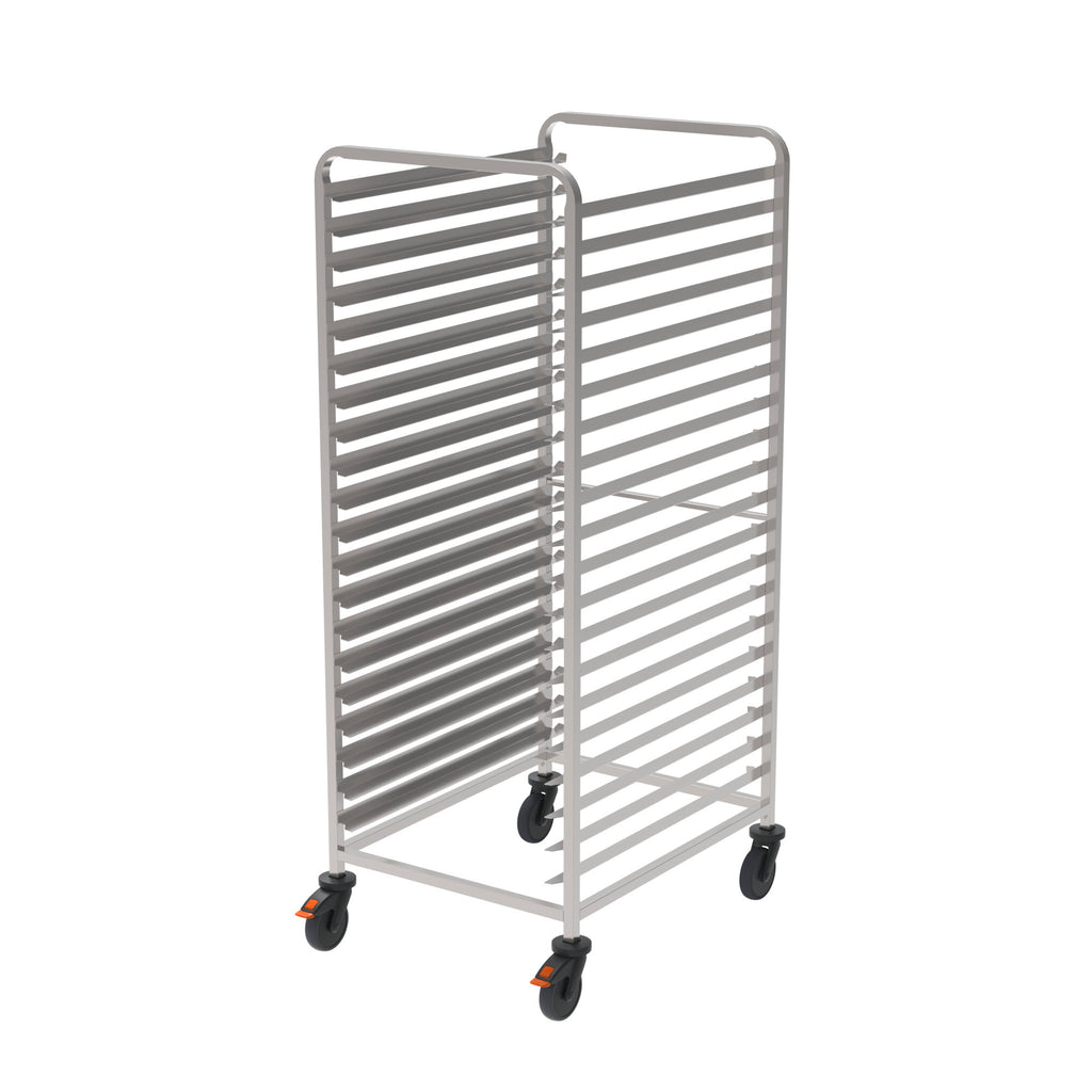 The sturdy shelf trolley is suitable for transporting, storing or moving food, for example on racks or trays – a simple, mobile helper.