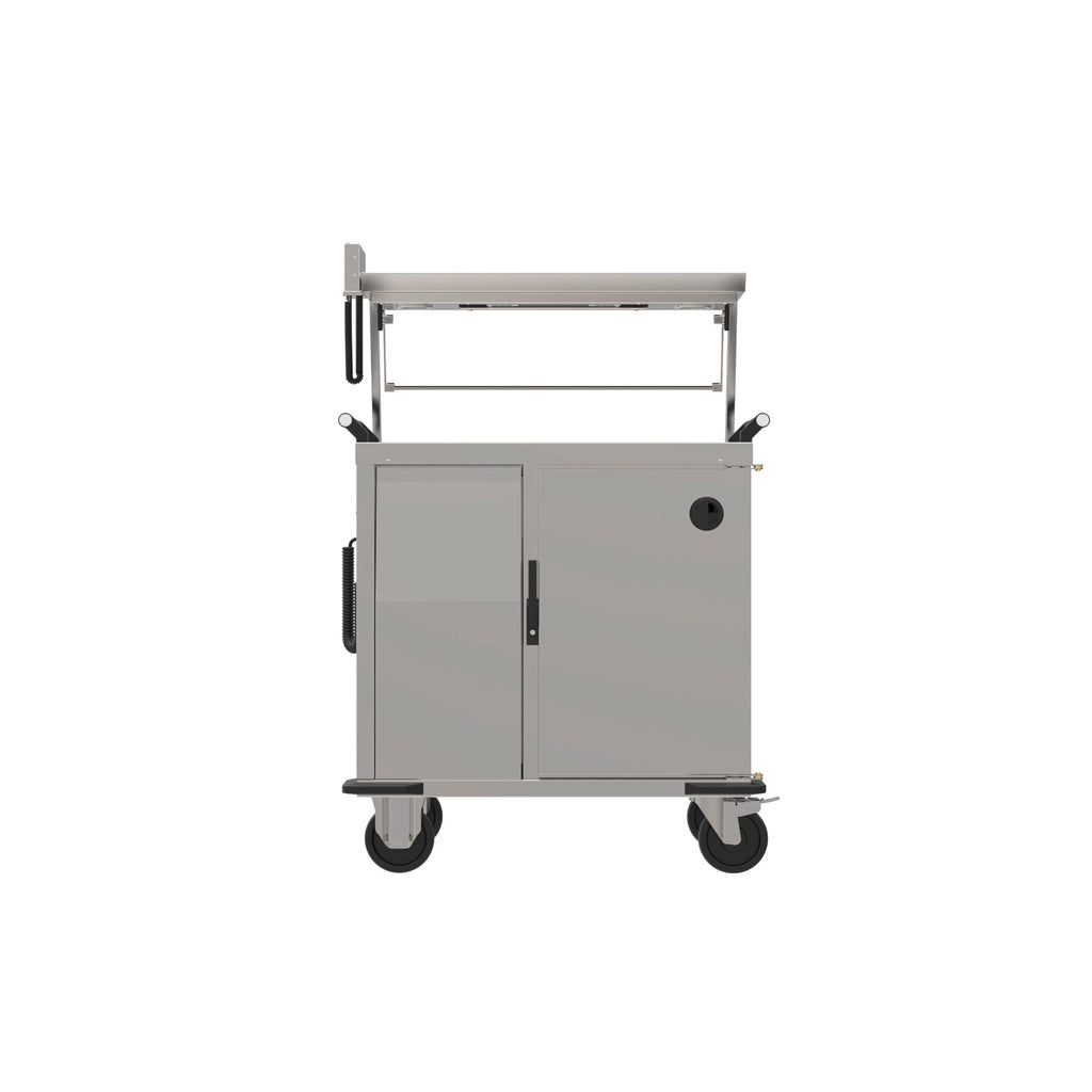 All processes, error messages, warnings, and interventions in the control system are logged. All HACCP-relevant temperatures are documented in real time for up to five years. The serial USB interface enables both data import and export of temperature curves and error logs. The Regiostation can be individually expanded with a wide range of accessories, including a tray chute made of stainless steel round tubing, a fold-down shelf, a Formica panel for a perfect look, and even a dispensing attachment.