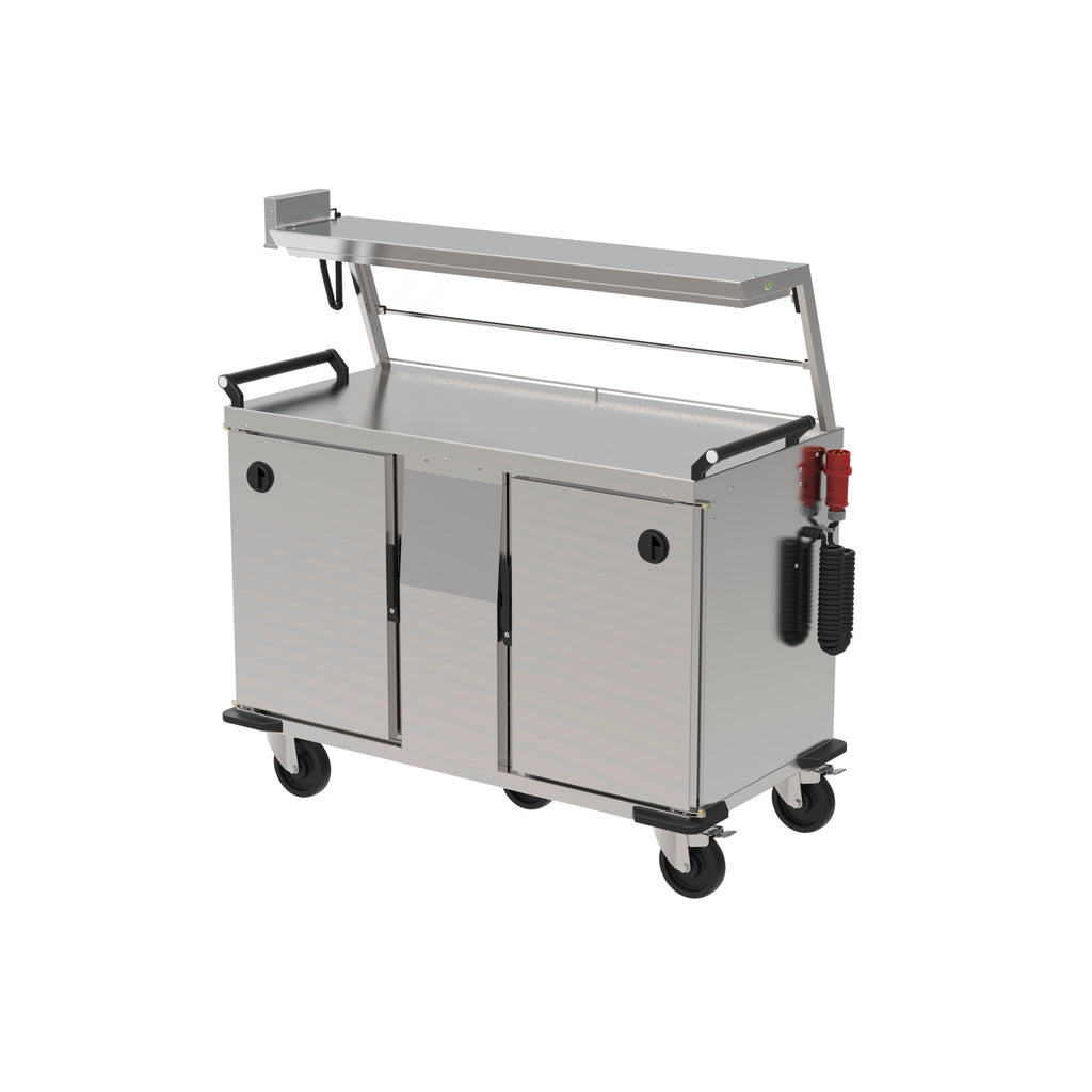 Smooth CNS cover, heated with two warming zones, separately switchable and adjustable via the removable control on the top (with sneeze guard).