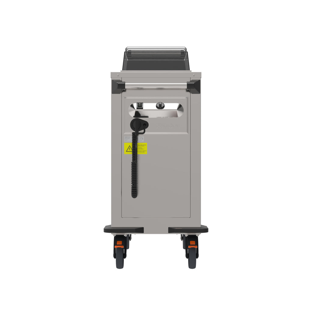 The tube stacker features powerful, adjustable circulating air heaters for warming, temporarily storing, and transporting dishes in two adjustable tubes. The spring force can be easily adjusted manually according to the weight of the dishes. It also features integrated overheating protection for perfect safety and includes polycarbonate lids for hygienic protection of the dishes*.