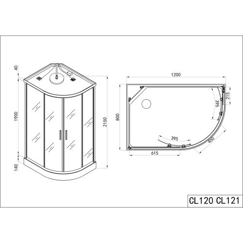 Sanotechnik complete shower cubicle VARIO right 80x120x215cm