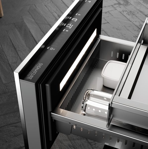 Die Unterbau-Multi-Kühl-Schublade von Signature Kitchen Suite verfügt über eine „self close“-Funktion, die dafür sorgt, dass die Schubladen automatisch schließen. Dies schützt die Qualität und Frische Ihrer Lebensmittel und gewährleistet eine optimale Konservierung.