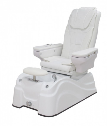 Soleni Caln, the SPA pedicure chair (similar to the images shown), features an elegant and comfortable design and high-quality PU upholstery. It has two motors to adjust the backrest tilt and seat movement.