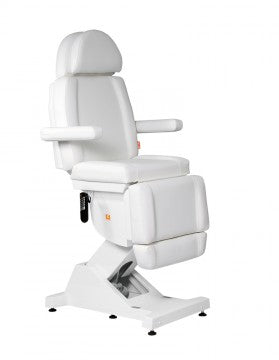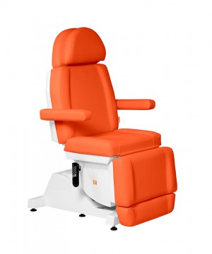 The height, as well as the backrest and leg rest, of the treatment table are adjustable via three powerful motors and remote control. The footrest, which folds down almost 90°, allows your clients comfortable access from the front. The headrest and footrest can be extended or completely removed. The armrests fold back and move with the incline of the backrest. A face cutout is located in the headrest beneath the removable neck pillow. The Comfort series products feature very quiet, smooth-running, and powerful motors.