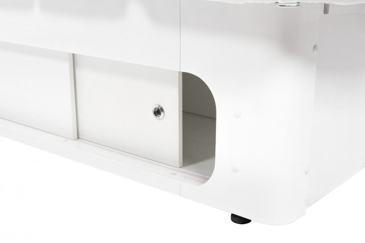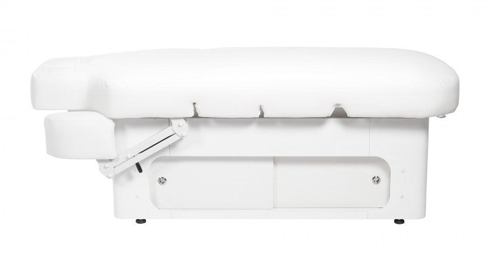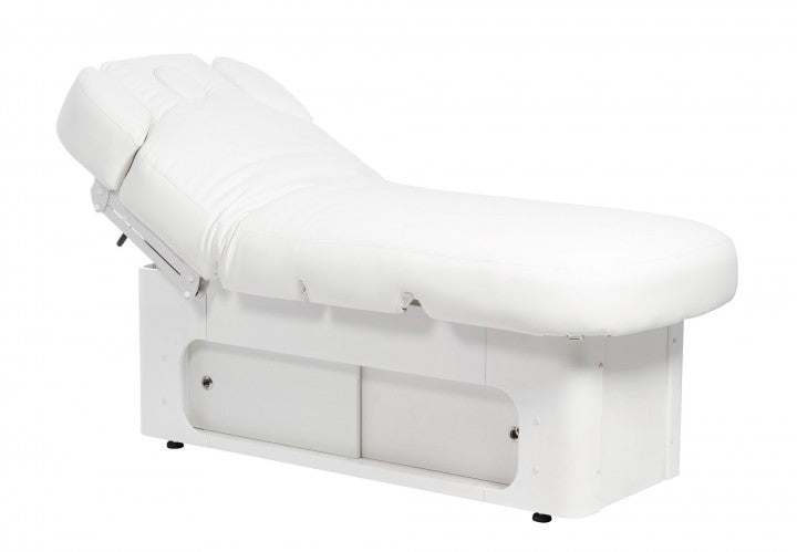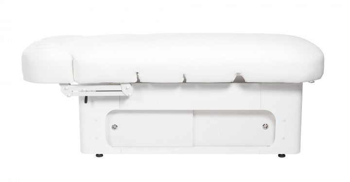 The high-quality "Keid Warm" massage table, with its inviting design, creates a truly comfortable and relaxing atmosphere in your studio. Its substantial weight and adjustable feet for leveling uneven floors ensure absolute stability. The base, crafted from premium wood, features ample storage space behind two sliding doors on each side.