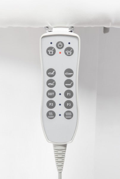 Three powerful motors allow you to position your clients perfectly. The height of the couch, the headrest, and the leg rest can be conveniently and quietly adjusted via remote control. Three positions can be saved and recalled as needed. The lying surface adapts perfectly to the body, ensuring exceptional comfort. This comfort can be further enhanced by activating the heating function.