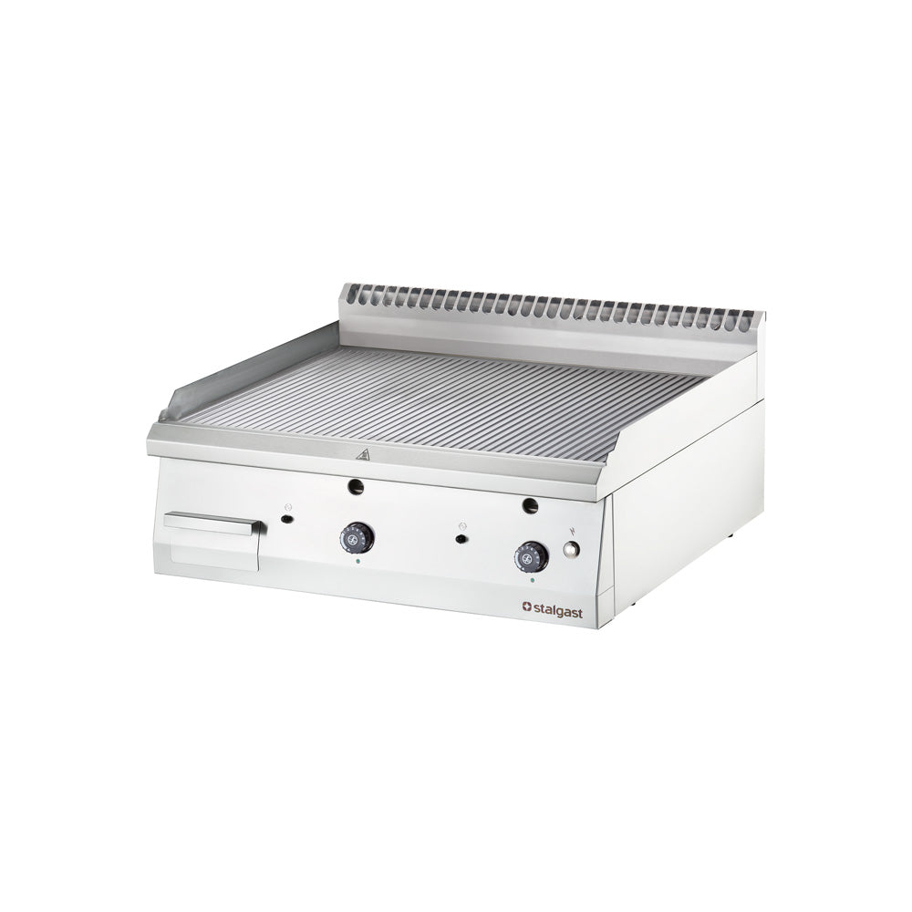 Griddle, plancha, teppanyaki – whatever you call it, you and your team will benefit from the many advantages of this cooking method, and your guests will love your freshly grilled dishes! The ribbed griddle can be used for a wide variety of dishes. You can quickly and easily grill steaks, burgers, seafood, and fish, as well as vegetables, all with an appetizing grill pattern! The grill offers a large cooking surface with two independently controllable heating zones totaling approximately 4400 cm², ensuring optimal heat distribution at up to 300°C. Even when you add fresh food, the temperature only drops slightly due to the optimal heat distribution. The rear chimney provides fresh air. On the grill surface, you can prepare larger quantities of food simultaneously, saving time and fat, and even marinate or flambé directly. Thanks to the three-sided raised edge, nothing falls off easily, and excess fat and cooking juices are collected in the drip tray. The drawer can be easily removed from the angled control panel for emptying and is dishwasher safe. This compact countertop unit, made of high-quality stainless steel, is particularly robust and easy to clean. The large knobs are ergonomically designed for intuitive operation. With its modern design and excellent features, this highly recommended appliance will enhance your kitchen and quickly become a much-loved cooking station in your restaurant. If you would like a base unit for this countertop appliance, that's no problem. You simply need to choose from the various options: the Stalgast 700 ND series offers open or closed base units, with or without doors, in a wide range of sizes to suit your needs.