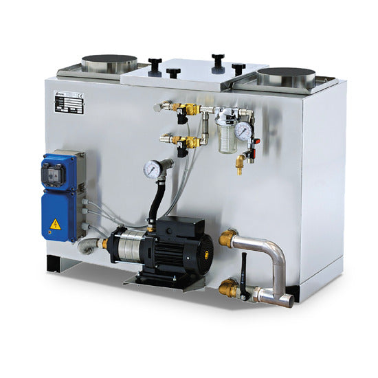 A smoke and soot cleaning system is essential wherever wood or coal is burned to prevent air pollution and fire hazards. It utilizes nature's most important element: water. It filters and cleans the smoke and soot particles produced during combustion, all while reducing consumption thanks to the integrated recycling system. Features include a housing made of AISI 316L stainless steel, a recycling scrubber with a motor-driven pump, a spray unit with nine conical stainless steel nozzles, an electrical resin feed panel with pump protection (resistant to high temperatures, over 250°C), a water level warning light, and a 40 mm stainless steel drain pipe for sewage connection. An operating and maintenance manual with CE certification is included.