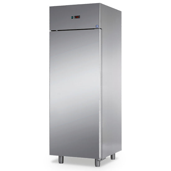 Innen und außen aus Edelstahl mit Ausnahme der äußeren Boden, Dach und der hinteren Wand aus galvanisiertem Stahl. Abgerundete Innenecken. Isolierung mit FCKW-freien, hochdruckgespritztem Polyuhrethan. Isolierungsdichte: 60 mm. Automatisch schließende Türen mit magnetischer Dichtung. Umluftkühlung. Serienmäßig herausnehmbares tropikalisiertes Monoblock-Aggregat (Raumtemperatur +30°C / rel. Luftfeuchtigkeit 60%). Völlig automatische Abtauung und Tauwasserverdunstung. Höhenverstellbare Füße aus rostfreiem Stahl. Kombi-Schränke nur mit Verdampfer im Innenraum erhältlich.Tiefkühlschränke BT: elektronisches Steuerpaneel mit 2 Temperaturfühler NTC, Heizungsdraht am Verdampfer, Heizkabel für Kondenswasserablauf, Türheizungsdraht, Lüftungstop bei Türöffnung, thermostatisches Ventil.Türanschlag wechselbar auf Anfrage.Energy class: G