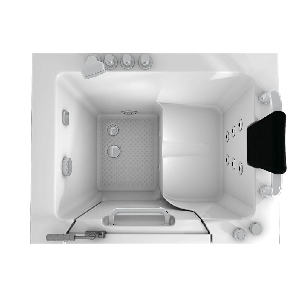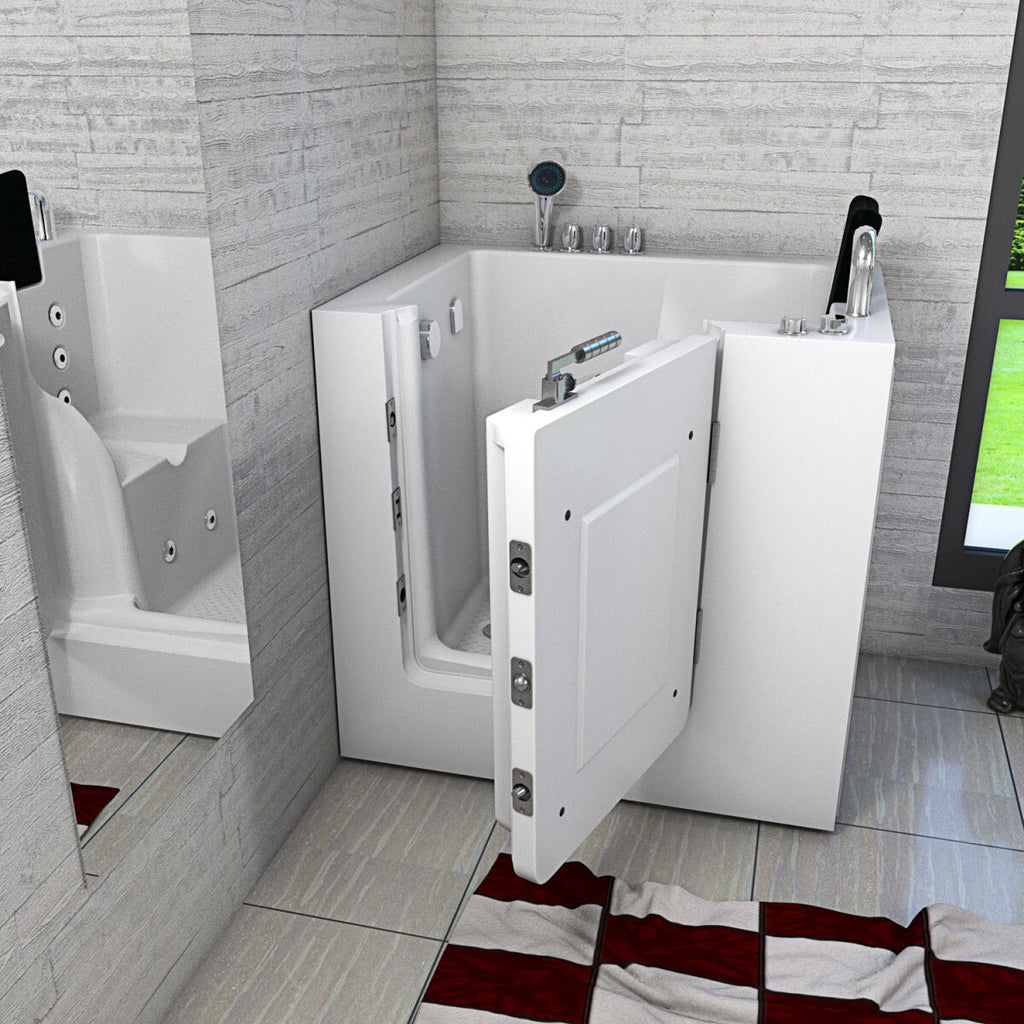 Die breite Türöffnung sowie der geräumige Einstiegsbereich, der integrierten Haltegriff und das anatomische Design des Wannenkörpers gewähren einen sicheren Halt und bieten Personen eine angenehme Bewegungsfreiheit.