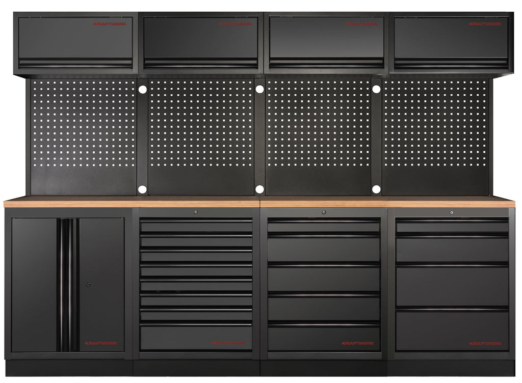 Die KRAFTWERK MOBILIO BLACK 4er Kombi ist freistehend und benötigt keine Befestigung. Du kannst sie also ganz flexibel dort platzieren, wo Du sie am meisten brauchst. Zudem lässt sich die Kombi problemlos erweitern – jedes Modul ist einzeln bestellbar. So kannst Du Deine Werkstatt im Laufe der Zeit nach Deinen Bedürfnissen anpassen und erweitern.