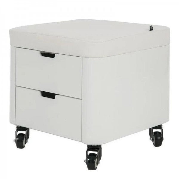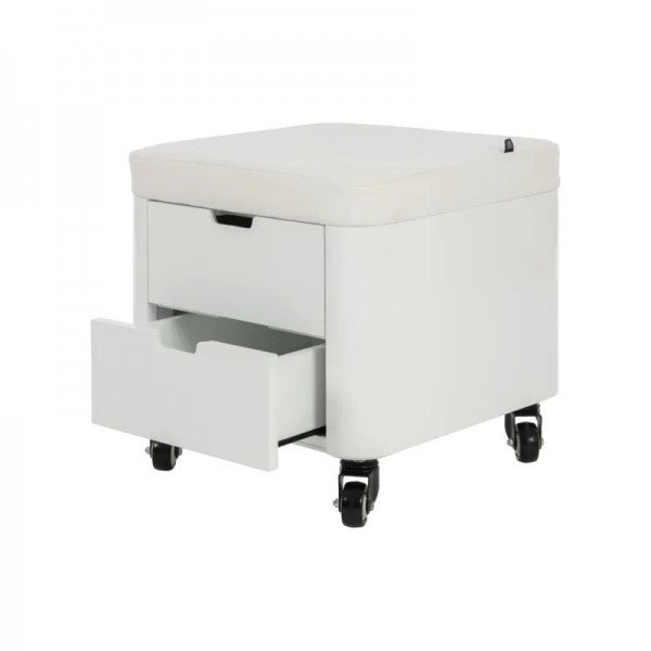 Soleni Cosy Kosmetik- und Pedikürhocker mit Schubladen – weiß, PU-Bezug