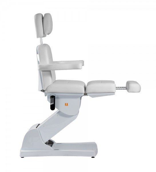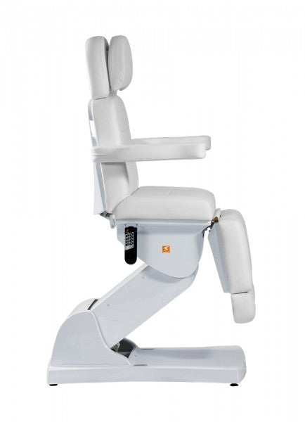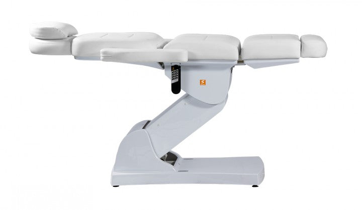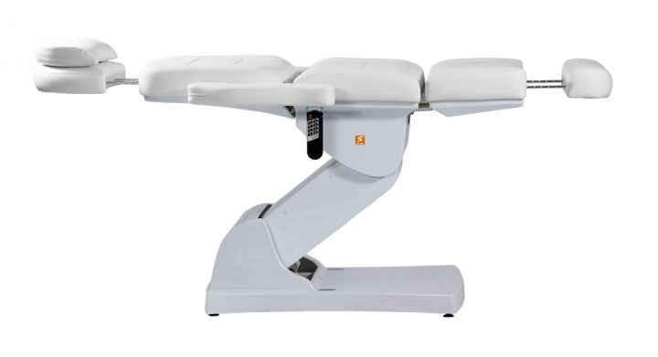 Die Neuheit unter den Queens: Vier Motoren ermöglichen die Verstellung der Höhe, des Fuß- und Rückenteils sowie der Neigung – alles bequem per Fernbedienung. Die Liege lässt sich komplett in die Waagerechte stellen; Kopfstütze und Fußteil können bei Bedarf ausgezogen bzw. entfernt werden. Die Armlehnen sind problemlos nach hinten klappbar, sie passen sich jedoch immer automatisch der jeweiligen Liegeposition an. Die Kopfstütze verfügt über einen Gesichtsausschnitt.