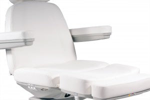 Bedienen lassen sich die vier leistungsstarken Motoren bequem per Bedienpaneele an den Seiten der Liege. Leise und sanft können die Höhe der Liege und Ihre Neigung angepasst werden. Mit zwei weiteren Motoren lassen sich das Rückenteil und das Beinteil individuell einstellen. Um den Einstieg in die Liegeposition zu erleichtern lassen sich die Armlehnen umklappen. Die Kopfstütze hat einen gepolsterten Gesichtsausschnitt und kann mit einem Stopfen verschlossen werden. Fußauflage und Kopfstütze sind manuell ausziehbar und lassen sich so an jede Körpergröße optimal anpassen.