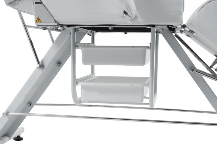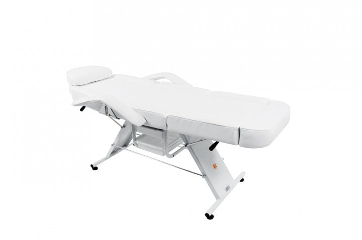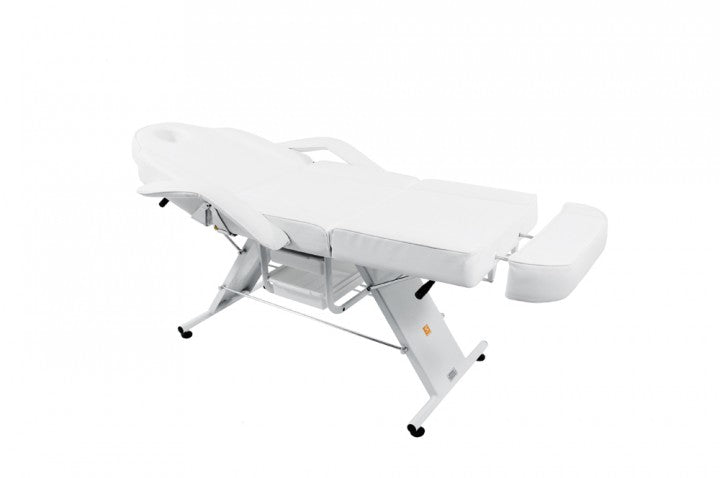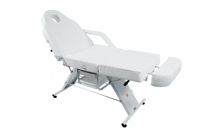 Diese Kosmetikliege ist mit dem neuen "Easy Click System" ausgestattet. Der neue Mechanismus ist einfach und schnell in der Anwendung und garantiert höchste Sicherheit. Bei herkömmlichen Kosmetikliegen mit einem Armlehnen-Stecksystem ist es möglich, dass die Armlehnen seitlich aus der Aufnahme rutschen, sobald Druck durch das Abstützen des Kunden auf die Armlehnen einwirkt. Dies ist mit dem neuen System nicht mehr möglich. Mit dem Easy Click System sind Sie auf der sicheren Seite.