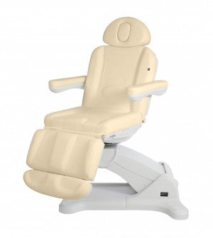 Hochwertige Liege extra designt um Platz zu sparen, da die Liege sich um die eigene Achse 240° drehen kann. Sie verfügt über 4 Motoren um die Höhe, das Fußteil, die Neigung der Rückenlehne und die Neigung des Sitzes zu regulieren.Die Armlehnen sind beidseitig abklappbar. Die integrierte Schalttafel an der Rückenlehne, am Fußteil und am Sitz ermöglicht eine komplette Steuerung der Liege aus jedem Punkt. Dieses Modell beeinhaltet die RST-Funktion, um die Einstiegsposition wieder zu erreichen. Hochwertige PU-Polsterung, leicht abwaschbar.