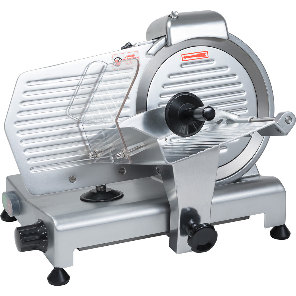 Die Aufschnittmaschine aus eloxiertem Aluminium ist hochwertig und sorgfältig verarbeitet für eine lange Lebensdauer. Damit schneiden Sie problemlos verschiedene, nicht gefrorene Produkte in bis zu 12 mm dicke, präzise Scheiben.