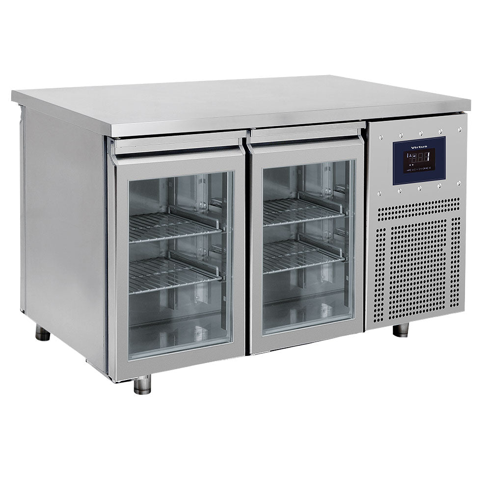 Innen und außen aus Edelstahl. Abgerundete Innenecken. Isolierung aus Polyuhrethan. Isolierungsdichte: 50 mm. Automatisch schließende Türen mit magnetischer Dichtung. Elektronisches Bedienfeld an der Vorderseite mit WiFi-Anschluss (optional). Umluftkühlung. Serienmäßig tropikalisiertes Aggregat (Raumtemperatur +43°C / rel. Luftfeuchtigkeit 65%). Völlig automatische Abtauung und Tauwasserverdunstung. Höhenverstellbare Füße aus Edelstahl. Standardausführung: 1 Rost aus Rilsan GN 1/1 für jede Tür, 2 Edelstahlschienen für jede Tür.