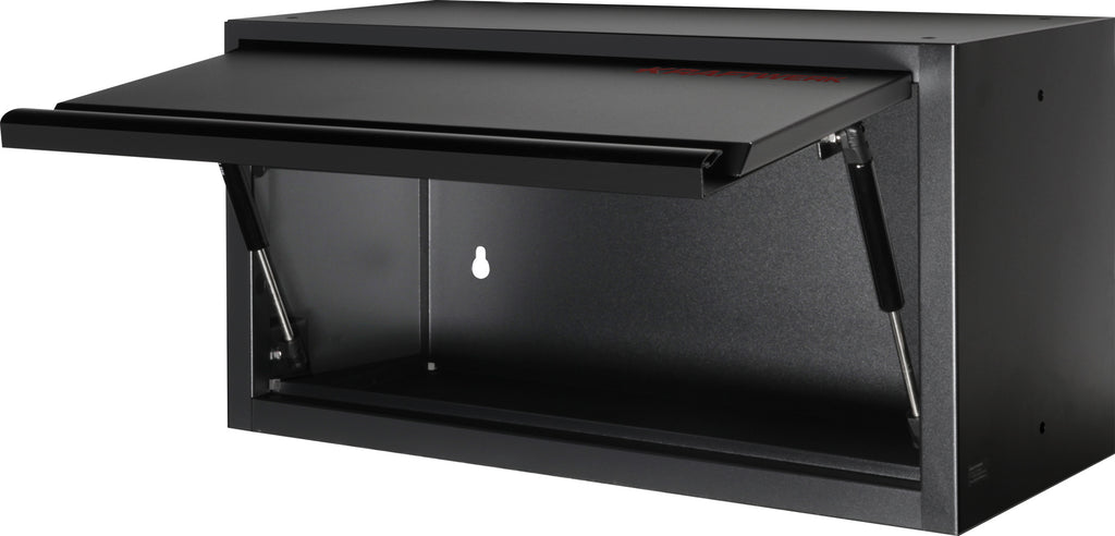 Le panneau perforé à motif carré facilite le rangement des outils. Associé au système de crochets (en option), il permet de personnaliser votre espace de travail. Les quatre armoires murales à portes et vérins à gaz offrent un espace de rangement supplémentaire et un accès rapide aux outils fréquemment utilisés.