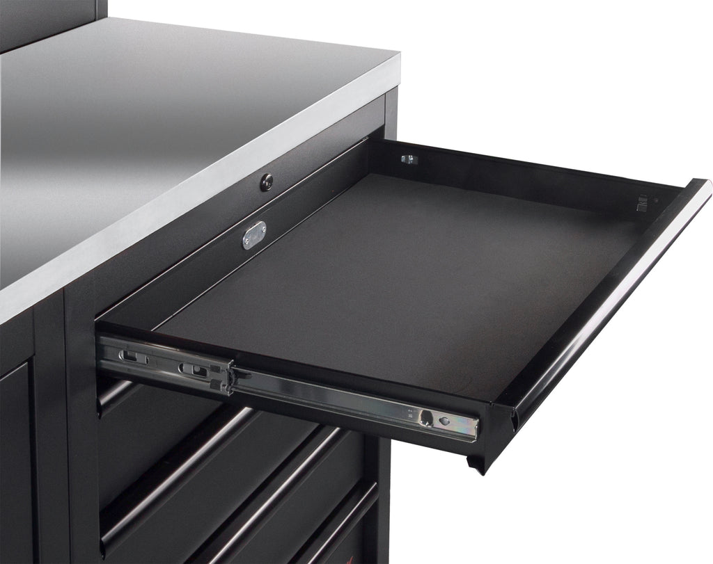 L'unité combinable KRAFTWERK MOBILIO BLACK 5 pièces vous offre un système de rangement flexible, évolutif et de haute qualité pour votre atelier. Grâce à ses nombreuses options de rangement, son plan de travail robuste et ses détails bien pensés, comme le panneau perforé carré et les tiroirs à roulement à billes, vous disposez de tout le nécessaire pour travailler efficacement et de manière organisée.