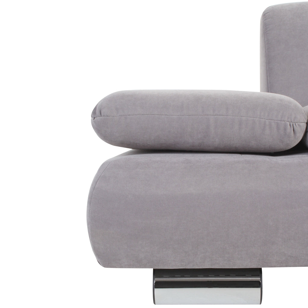 Canapé élégant au look moderne. Que vous soyez allongé ou assis, les accoudoirs fonctionnels réglables offrent un confort dans toutes les positions. Le rembourrage en mousse supplémentaire sur le siège assure une assise confortable et douce. Les pieds en métal chromé améliorent encore l'apparence. Le dossier est recouvert d'un tissu original, ce qui permet au canapé d'être placé librement dans la pièce.