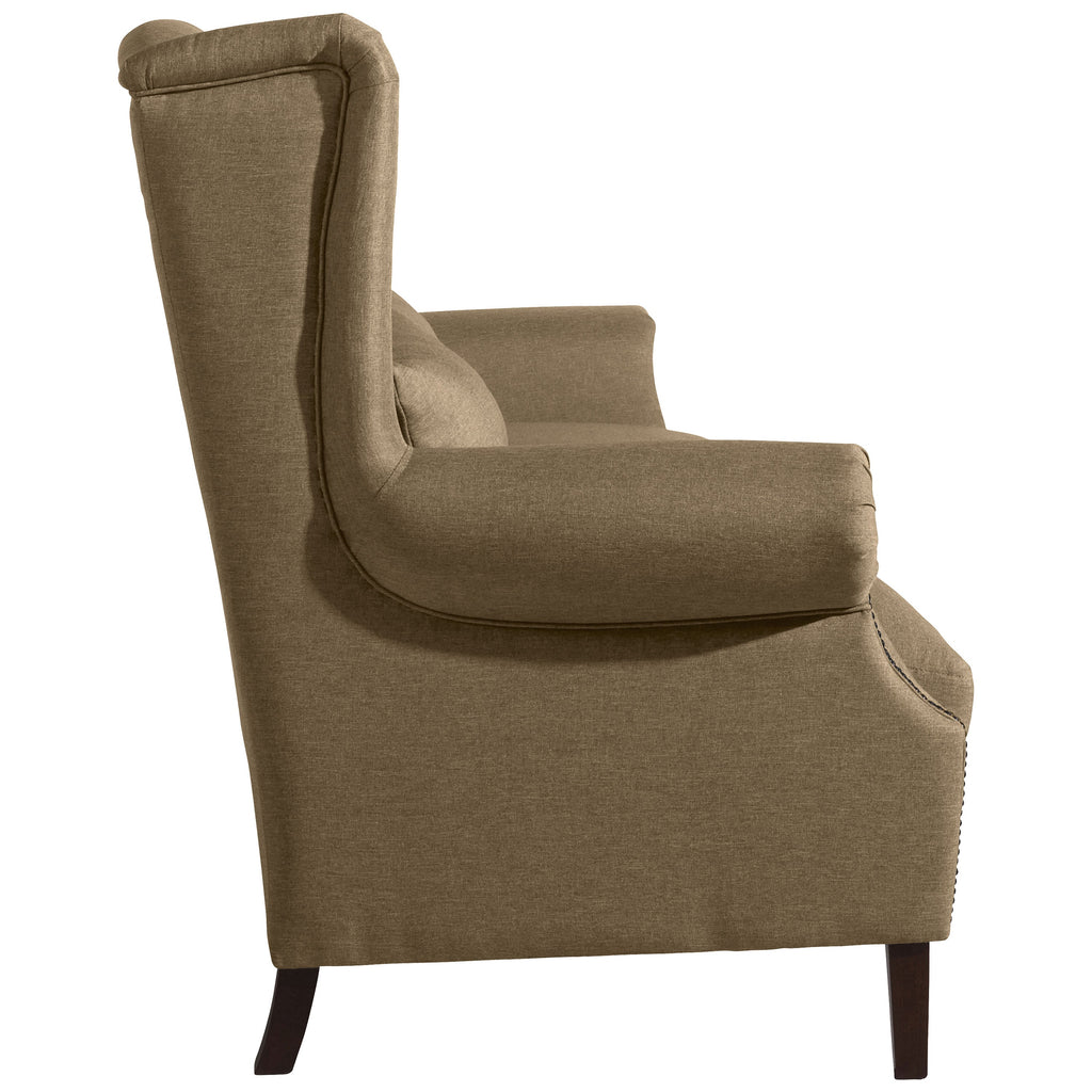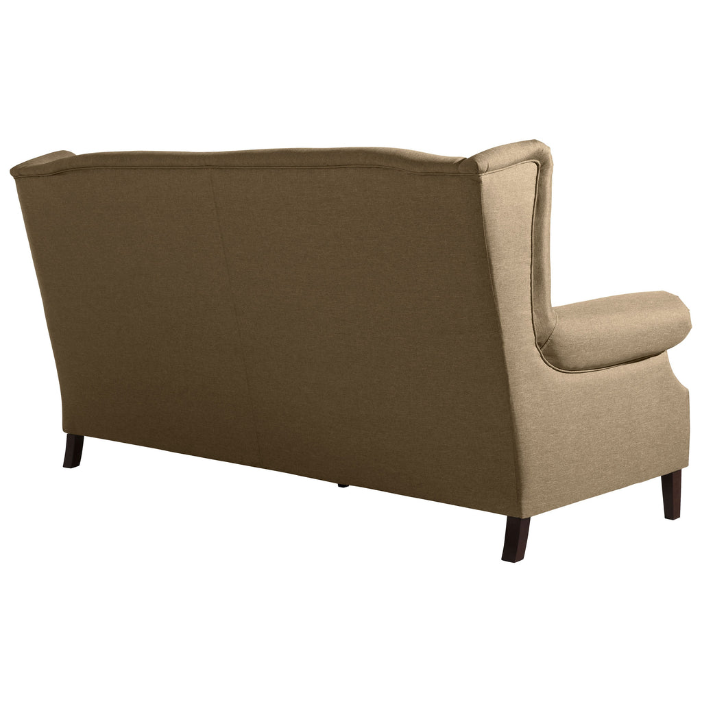 Canapé confortable de style ailé avec de nombreux détails élaborés. Les accoudoirs élégamment courbés sont dotés d'une bande de clous décorative. Les coussins d'assise amovibles avec rembourrage en flocons de mousse souple sont fixés au corps à l'aide d'une fermeture velcro. Les coussins décoratifs inclus offrent un confort d'assise supplémentaire et soulignent le look chaleureux. Flora est disponible en version 2 places et 3 places et peut également être complété par un fauteuil simple assorti.