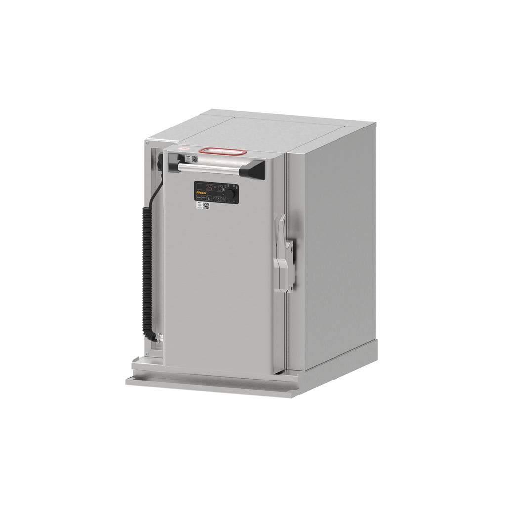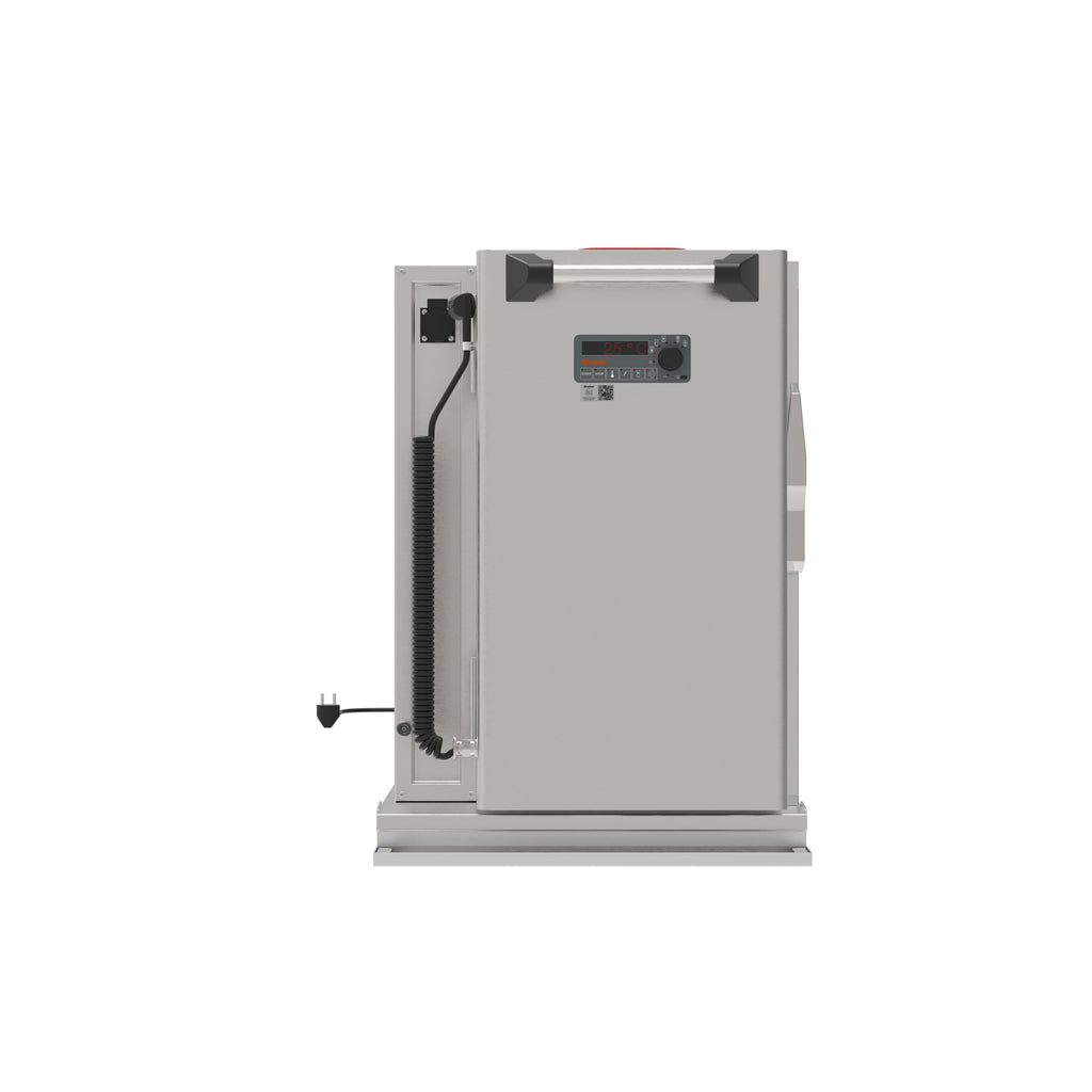 La porte à fonction spéciale confère à l'appareil encastrable doté de deux radiateurs à air pulsé à commande numérique séparée une large gamme de fonctions et des propriétés hybrides uniques - avec des programmes sélectionnables pour maintenir le froid et le chaud simultanément ou séparément, ainsi que pour régénérer, cuire et cuire les aliments dans le système GN. Avec durée, humidification et point de consigne supplémentaires réglables individuellement pour la température de la chambre ou du cœur. Sous la porte se trouve un bac récupérateur d'eau avec bac récupérateur amovible.
