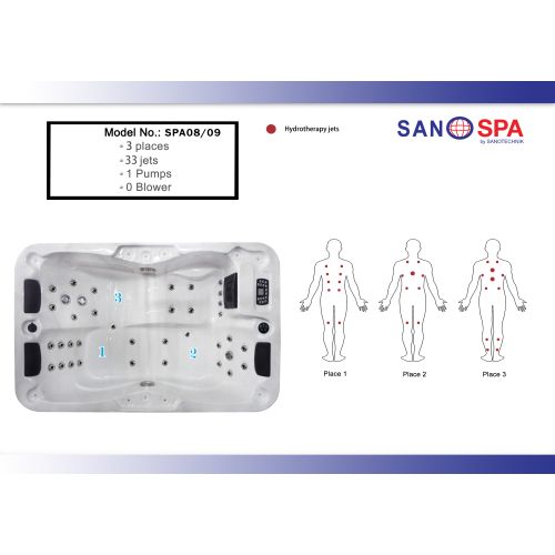 Le élément de commande numérique avec commande électronique avancée permet une utilisation aisée de toutes les fonctions. La combinaison de Désinfection à l'ozone , Filtres à cartouche et Système d'écumeur assure une eau propre en permanence – a ajout supplémentaire de chlore Ceci est nécessaire pour maintenir une eau de qualité hygiénique. système d'isolation thermique Parallèlement, elle garantit une utilisation économe en énergie.