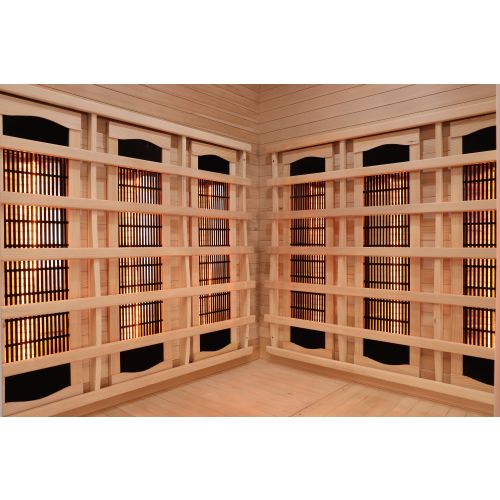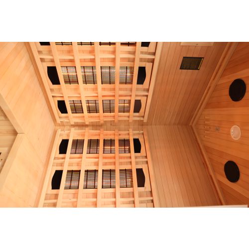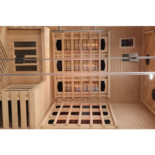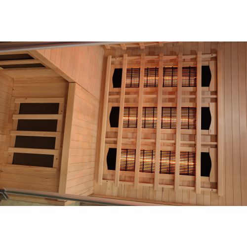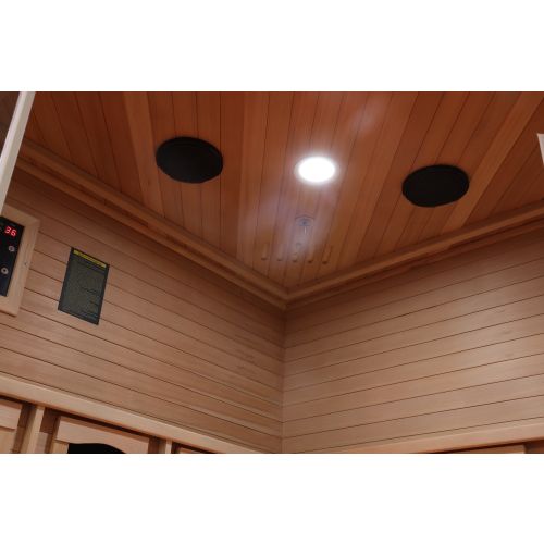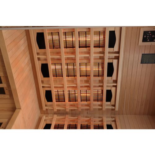 Avec 6 émetteurs à spectre complet et 3 plaques chauffantes en carbone Elle assure une diffusion homogène et profonde de la chaleur, soulageant les tensions et favorisant le bien-être. Plus d'informations sont disponibles ici. élément de commande électronique La température, la lumière et le son peuvent être réglés individuellement.