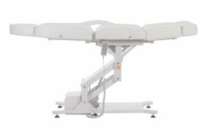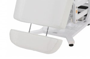 Les différentes options de réglage garantissent des conditions de travail optimales pour les clients et offrent une personnalisation adaptée à chaque morphologie. La hauteur de la table de traitement, l'angle du repose-jambes et l'inclinaison du dossier se règlent facilement à distance. Les moteurs sont silencieux et fluides. repose-pieds rabattable à 90° Ce fauteuil permet à vos clients de s'asseoir et de se lever confortablement. Les accoudoirs s'ajustent automatiquement à la position de l'utilisateur et sont amovibles. Les appuis-tête et repose-pieds sont réglables manuellement et amovibles. Une ouverture pour le visage est prévue sous l'appui-tête.