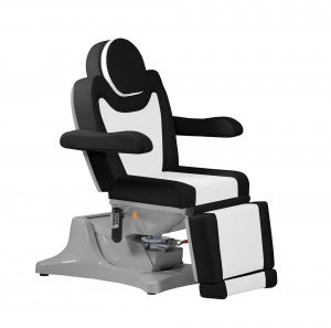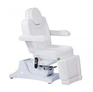 Cette table de soins multifonctionnelle est idéale pour les soins esthétiques, les massages et les pédicures. La hauteur, l'inclinaison, le dossier et le repose-jambes sont facilement réglables par télécommande. Ses quatre moteurs puissants fonctionnent en douceur et silencieusement. L'accès à la table est facilité par le repose-jambes rabattable à près de 90° et sa faible hauteur de 54 cm. L'appui-tête et le repose-pieds sont extensibles pour s'adapter parfaitement à toutes les morphologies et peuvent également être retirés. Les accoudoirs sont rabattables et suivent la position de la table. Un coussin rembourré pour le visage est situé sous l'oreiller cervical amovible. La table peut également pivoter à 90° dans toutes les directions (en option).