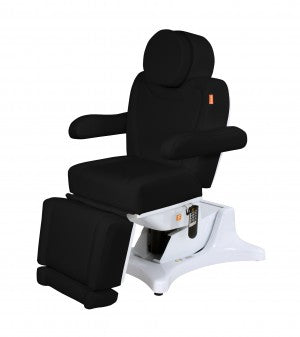 La hauteur du fauteuil, ainsi que l'inclinaison du repose-jambes, du dossier et de l'assise, se règlent facilement à l'aide d'une télécommande. Les quatre moteurs puissants fonctionnent silencieusement et en douceur. repose-pieds rabattable à 90° Ce fauteuil offre à vos clients un accès confortable grâce à sa hauteur de 54 cm. Les accoudoirs s'ajustent automatiquement à la position de l'utilisateur et sont amovibles. Les appuis-tête et repose-pieds sont réglables manuellement et amovibles. Une ouverture pour le visage est prévue sous l'appui-tête.