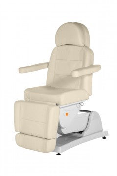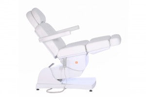 Le fauteuil de toilettage cosmétique à quatre moteurs « Queen » VIII Le modèle « Classique » est très fonctionnel et spacieux. Il offre une ergonomie professionnelle et un confort exceptionnel à vos clients. Son poids conséquent et ses pieds réglables garantissent une stabilité parfaite. Le socle est recouvert de plastique blanc de haute qualité.