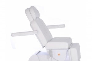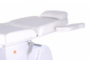 La hauteur et l'inclinaison du fauteuil, ainsi que les angles du dossier et des repose-jambes, se règlent facilement à l'aide d'une télécommande. Les moteurs sont silencieux et fluides. La surface inclinable s'adapte à toutes les morphologies grâce à l'extension des sections pour la tête et les pieds. L'appui-tête est doté d'une découpe rembourrée pour le visage sous l'oreiller cervical amovible. Les accoudoirs se replient manuellement et offrent un soutien confortable pour les bras en position ventrale.