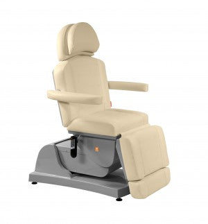 Cette table de soins multifonctionnelle convient aux soins esthétiques, aux massages et aux pédicures. La hauteur, l'inclinaison, le dossier et le repose-jambes sont facilement réglables par télécommande. Ses quatre moteurs puissants fonctionnent en douceur et silencieusement. Le repose-jambes se rabat à presque 90° pour un accès aisé. L'appui-tête et le repose-pieds sont extensibles pour s'adapter parfaitement à toutes les morphologies et peuvent également être retirés. Les accoudoirs se replient et suivent le mouvement de la table lors des réglages. Un coussin rembourré est prévu sous l'oreiller cervical amovible.