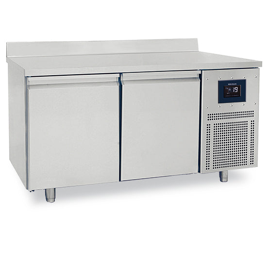 Intérieur et extérieur en acier inoxydable. Angles intérieurs arrondis. Isolation en polyuréthane. Épaisseur d'isolation : 50 mm. Portes à fermeture automatique avec joints magnétiques. Panneau de commande électronique en façade avec connexion Wi-Fi en option. Refroidissement par ventilation forcée. Unité tropicalisée de série (température ambiante +43 °C / humidité relative 65 %). Dégivrage et évaporation des condensats entièrement automatiques. Pieds en acier inoxydable réglables en hauteur. Plan de travail en acier inoxydable. Équipements de série : 1 étagère grillagée Rilsan de 60 x 40 cm par porte, 2 rails en L en acier inoxydable par porte.