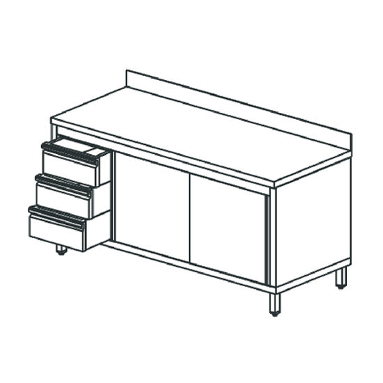 Meuble de bureau Virtus & Mastro Neutral avec caisson à tiroirs intégré à gauche, portes coulissantes et rebord surélevé, 1800 x 700 mm